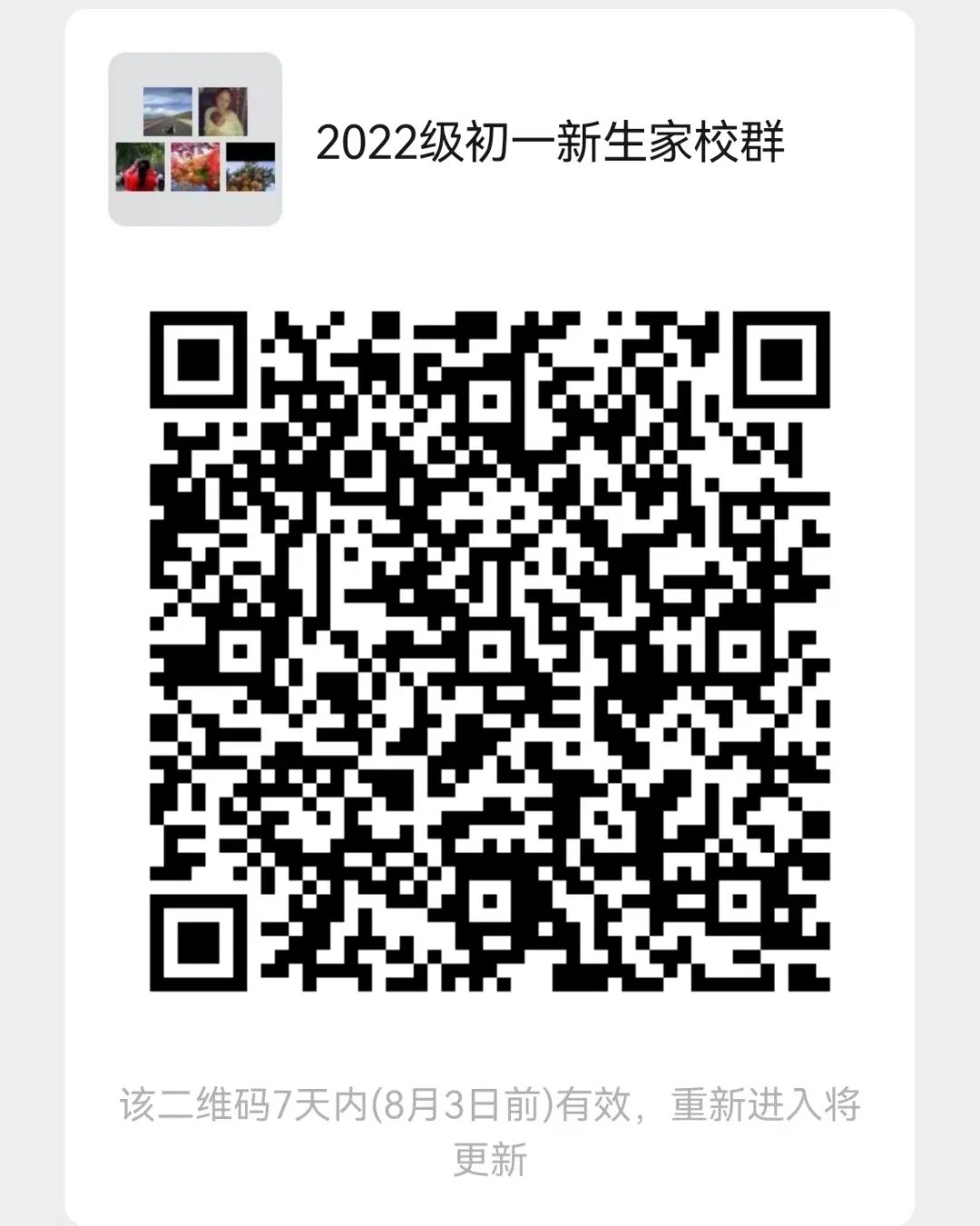 学校官方认可的唯一初中2022级家校群。入群实行实名制,家长入群请注明孩子姓名和身份,学生勿入。分班前群名片统一为“学生姓名+爸或妈”如某某爸爸,分班后群名片改为“班号+学生姓名+爸爸或妈妈” 如2201某某爸爸或妈妈。
