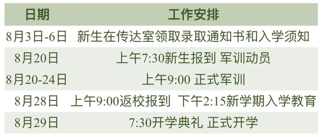 3.体检要求:请在8月15日前完成。以自主、自愿、就近、方便的原则选择正规医疗机构进行此项筛查。结核菌素皮肤试验注射后需要72小时查看结果,请准备好充足时间。新生报到时,请将检查表格与医院结核筛查结果装订在一起,交给班主任老师。未做结核筛查体检者不得参加军训和办理入学手续。如确实是过敏体质或有基础病不能做PPD皮试,需在医生建议下做其他相关的结核病筛查。